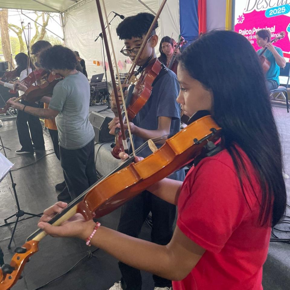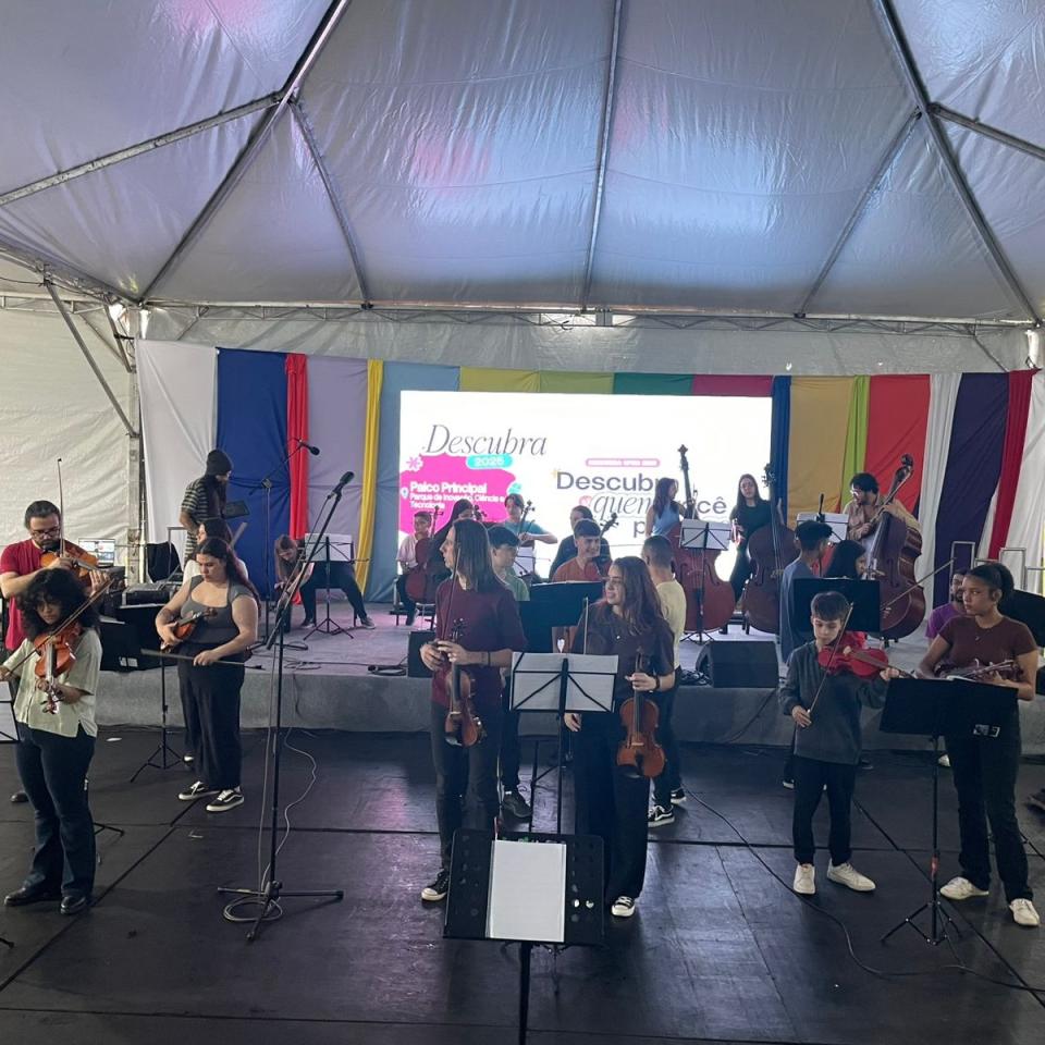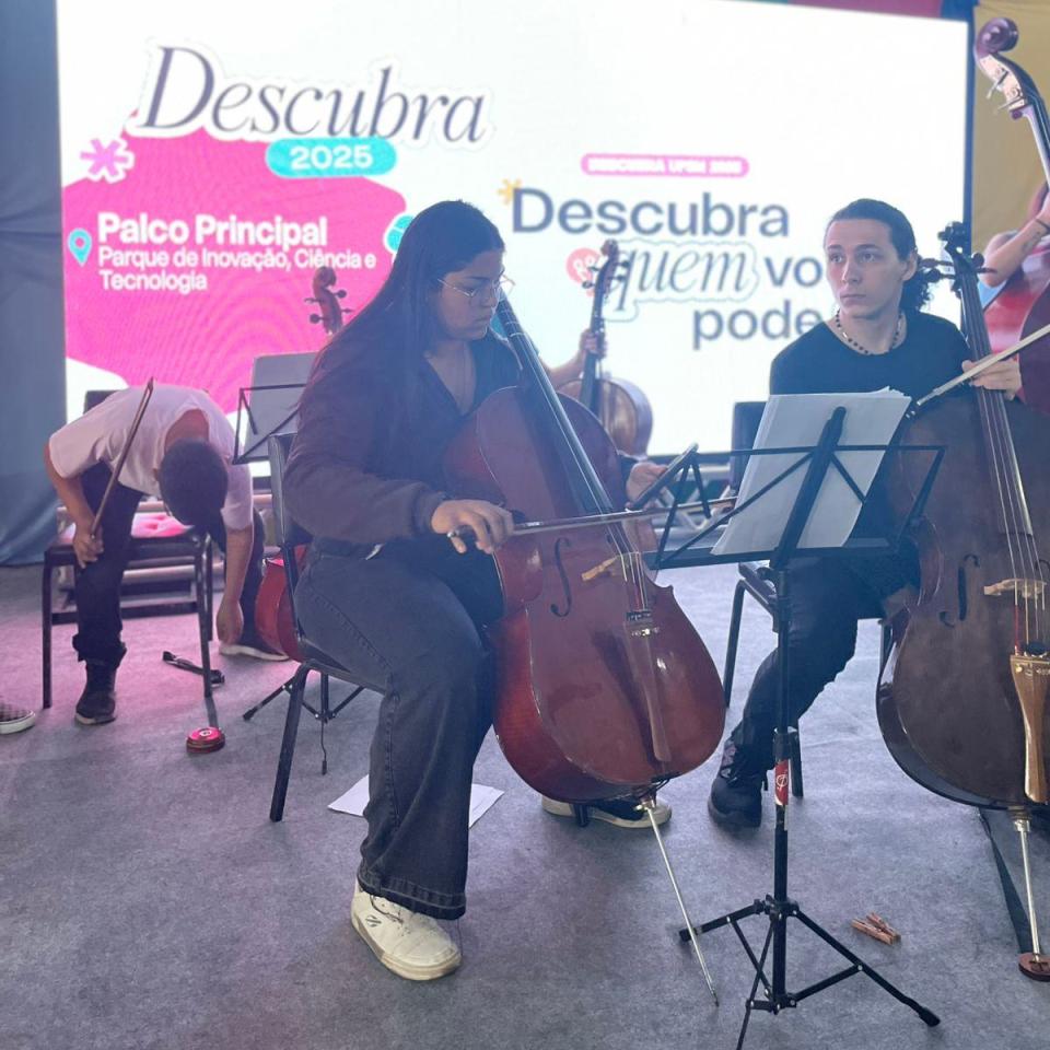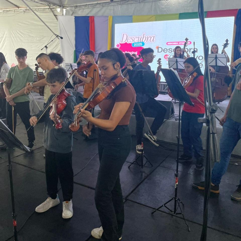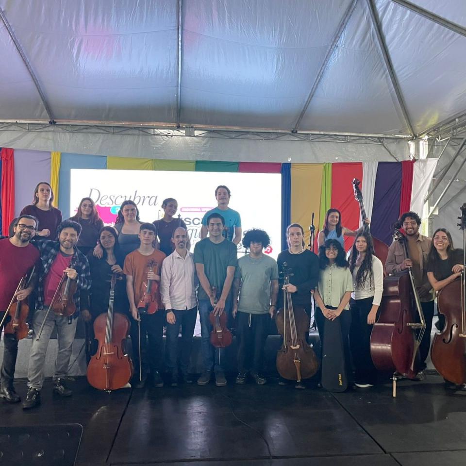 Os integrantes da Orquestra Projeto Pallotti participam da Orquestra Viva da Universidade Federal de Santa Maria (UFSM), levando sua música, talento e dedicação ao evento Descubra UFSM.
