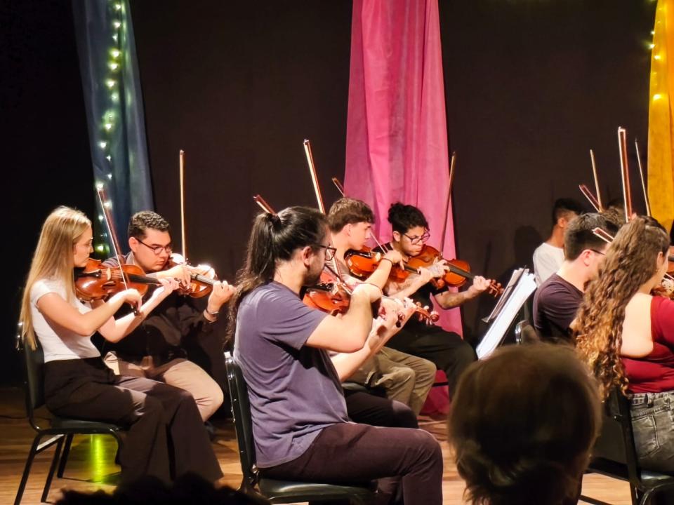 Uma noite marcada por emoção e talento tomou conta do Teatro Caixa Preta, com a apresentação da Orquestra de Cordas e da Orquestra Viva.